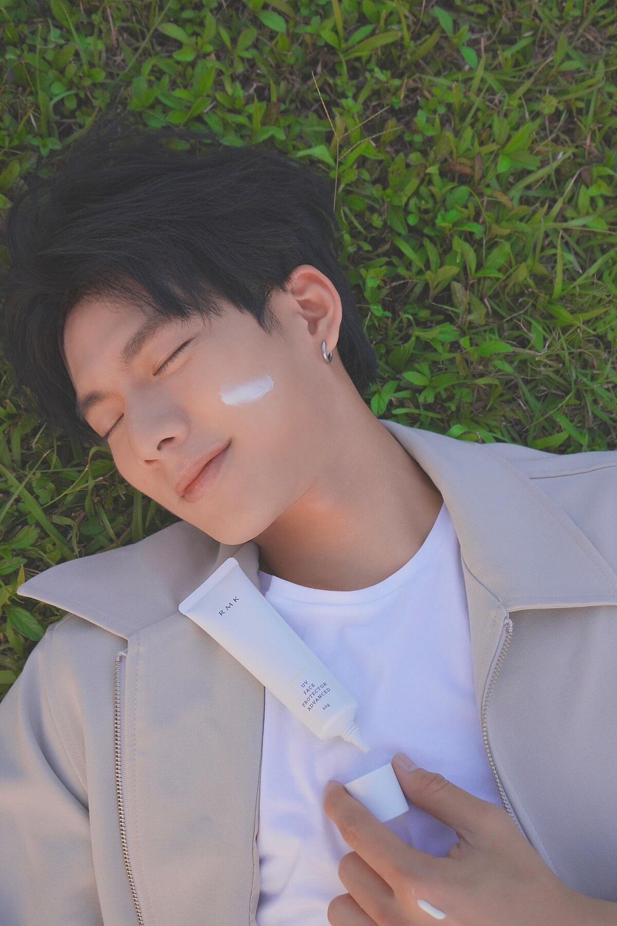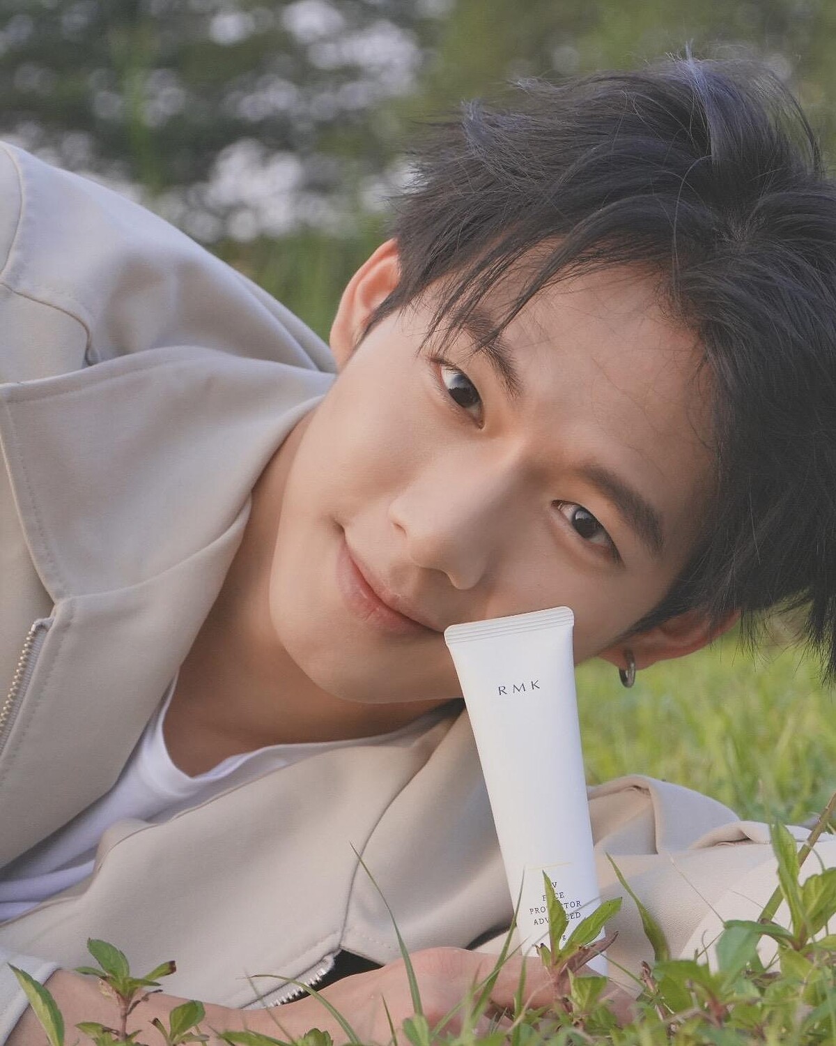 既然常陪著狗狗遊山玩水,臉上理應會留下陽光洗禮後的斑點曬痕,但是仔細觀察了他的皮膚,卻發現除了沒有瑕疵斑點外,他的膚況還比許多女生來得細緻無瑕!甚至!還自帶不需濾鏡的透明感,在又羨慕又忌妒的心情下,我們決定要好好問問吳念軒私下的護膚方式,同時打開他的隨身包包,直擊了每天必備物品,果然讓我們找到了養成他好感膚質的重要關鍵「RMK UV防護乳」!