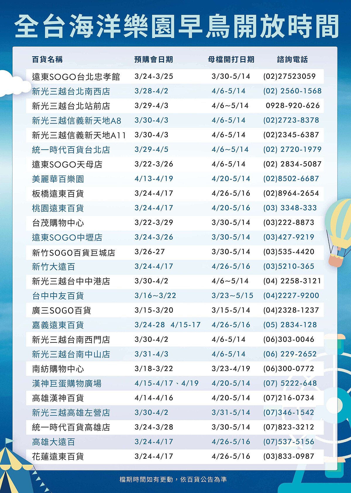 6. 各百貨週慶檔期依各百貨公告為準。