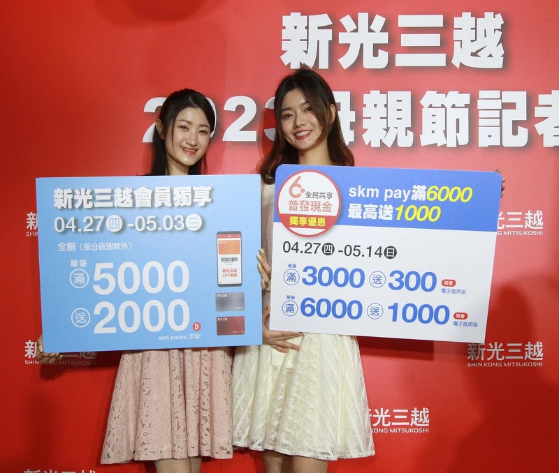 ‧4/27~5/3使用skm pay支付消費,刷聯名卡滿10,000送200電子禮券、刷11家指定銀行信用卡再享滿萬送100電子禮券等好康