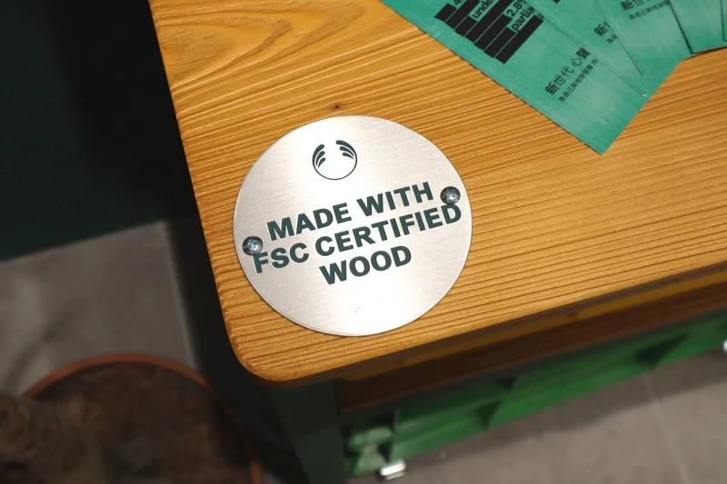 1.材料選擇:使用90%永續建材(FSC認證,以保護動物與地球),包括再生木材、再循環塑膠、金屬等等,而且這些建材都是100%可回收的,讓美麗不再造成地球的負擔。