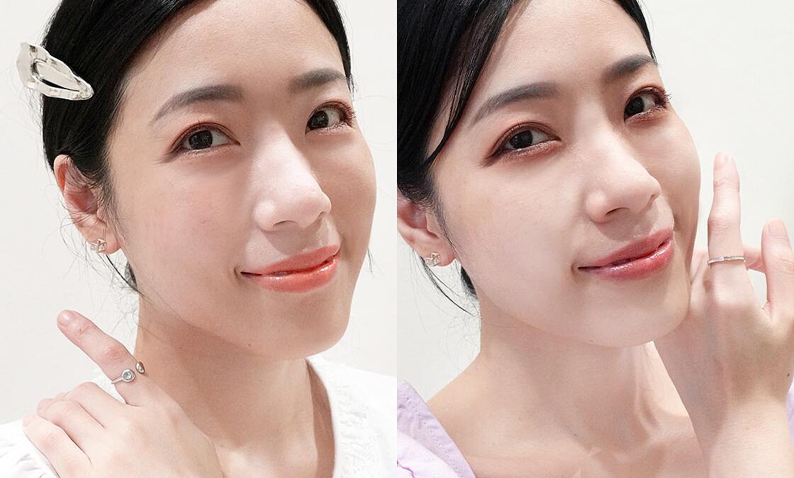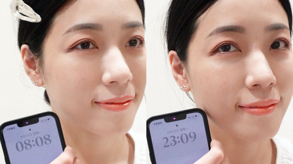 這個組合M編推薦給需要眼妝或是唇妝較濃郁時使用,充滿透明感的膚質、精緻光澤感底妝,襯托出眼唇妝的高級感,直逼滿分最佳神助攻。實測經過一整天,連瀏海都熱到變成條碼瀏海,但是臉上妝感跟剛完妝時幾乎零差別,毫無懸念的妝效、持妝度直接翻N倍。