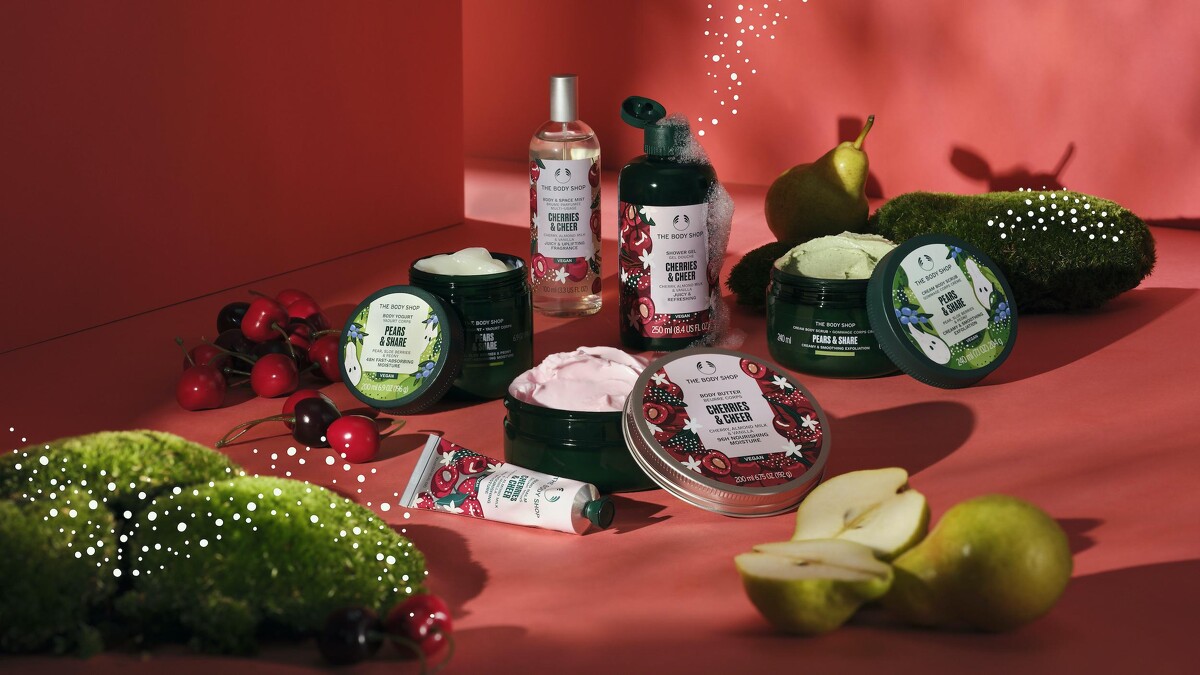 充滿聖誕季節溫暖氛圍的純淨果香身體保養系列,「歡沁櫻桃」及「晨曦陽梨」