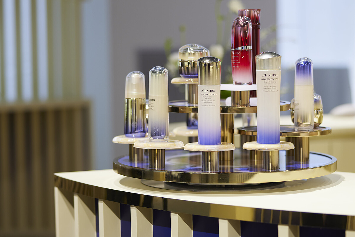 現場展區以象徵資生堂的日式現代精緻美學的「開鏡式」(鏡開き)揭開序幕,走進偌大展區會先以沈浸式的互動體驗開場,透過不同的體驗區域,讓觀眾彷彿也親身參與採摘東方緋紅花的旅程,傳遞全新奢華成份「珍稀緋紅花緊緻活萃TM」的強大抗老功效;在現場當然也能體驗資生堂激抗痕全系列產品,還能透過資生堂的專業視覺化技術美膚儀進行膚況診斷,並享瘦舒緩的手部按摩。