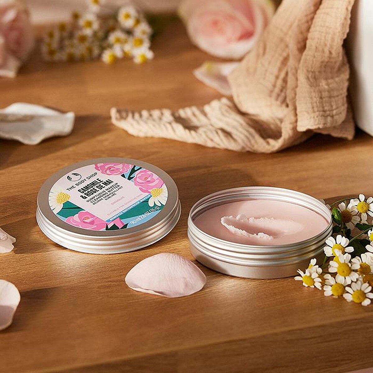 最近的天氣不穩定光保養肌膚還是跟你鬧脾氣,聽M編一句:「從卸妝開始就溫柔以待!」THE BODY SHOP全新推出的洋甘菊&法國玫瑰修護卸妝霜,高達95%天然保養成份,包含舒緩肌膚的英國洋甘菊萃取精華,賦予潤澤力的乳油木果油及有機橄欖油,等於保養的第一步就給肌膚滿滿的保護力,如冰淇淋般綿密霜狀質地輕柔推於肌膚上溶解彩妝,不會造成拉扯或過度摩擦問題,遇水迅速乳化,毛孔跟著乾淨,肌膚細緻柔嫩,換季乖乖好聽話!