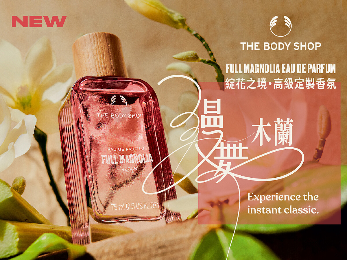 初春當然要來點小浪漫,THE BODY SHOP新推出的綻花之境-漫舞 木蘭EDP香水,優雅迷人綿延細長的溫潤花香,有如置身英國鄉村花園,悠然自在,完美揉和佛手柑和木蘭花香氣,加倍襯托出尾韻麝香及木質調的渾厚感,即日起購買75ml,就獻上專屬禮盒服務,快送給最心愛、最感謝的母親/太太吧!