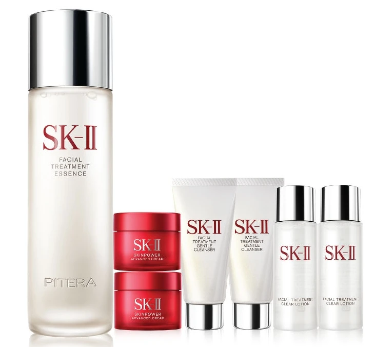 內容: SK-II 青春露230ml、SK-II致臻肌活能量活膚霜 15g*2、SK-II全效活膚潔面乳20g*2、SK-II亮采化粧水 30ml*2。