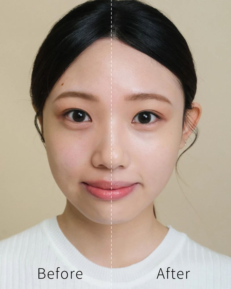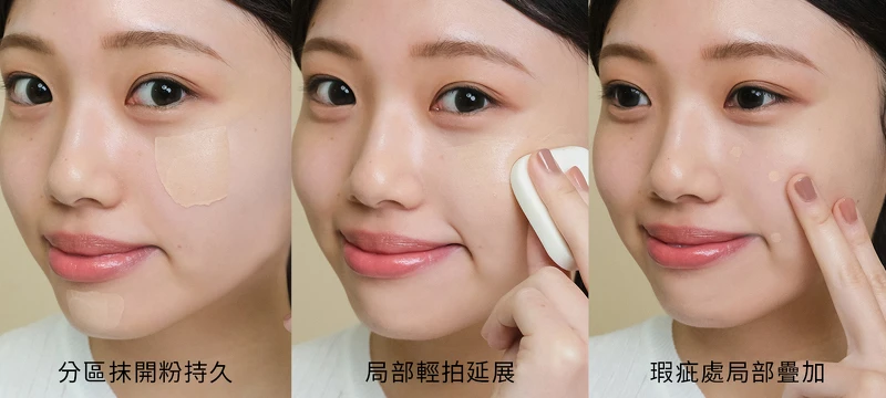 Step1.分區輕薄上妝,局部抹開粉持久(可透出肌膚薄度)