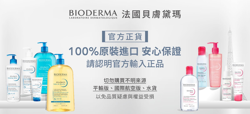 BIODERMA法國貝膚黛瑪自1977年創立,受全球超過15萬醫學專家推薦,其專業護膚品源自醫學中心專為肌膚疾病所設計的產品,因此BIODERMA嚴格控管品質,全品項堅持法國原裝進口,以確保消費者權益與肌膚健康。近期,市場上甚至連大型電商皆出現非官方輸入正品!其貨可能有成分來源不明、品質未經安全檢測、品質未經安全檢測、效期做假、改標疑慮,以及運輸保存不當之種種疑慮,可能引發肌膚問題,甚至造成肌膚傷害!
