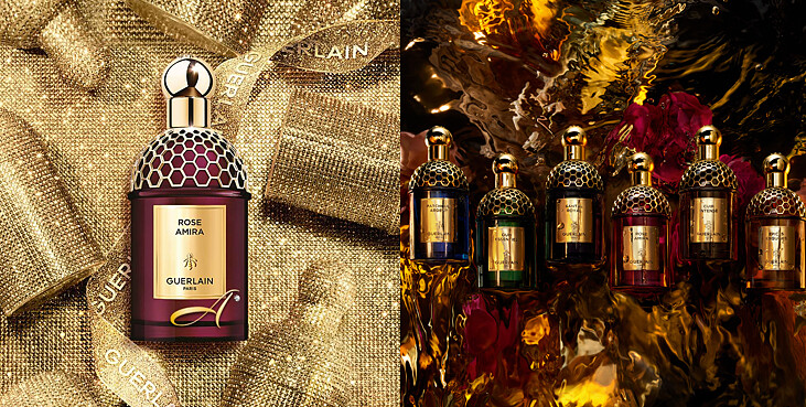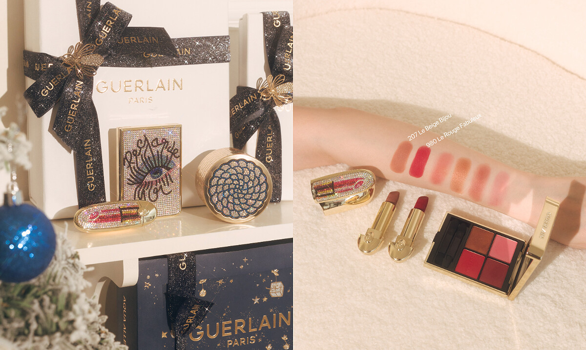 宛如隨身精品配件的「Rouge G 紅寶之吻高訂唇膏」在Shourouk Rhaiem的巧手下,讓彩殼上出現了閃耀著全彩反光的水鑽唇膏!水鑽唇膏彩殼不只俏皮時髦,在光線折射下更像是閃閃發光的珠寶盒般,令人驚嘆!除此之外彩妝創意總監Violette也為了聖誕節調配全新霧光絲絨的紫羅蘭色調:980 Le Rouge Fabuleux,深邃艷麗紅不只顯白更能展現女性迷人魅力;而 207 Le Beige Bijou,略帶粉紅的精緻米色則能襯托好氣色及法式優雅風格。
