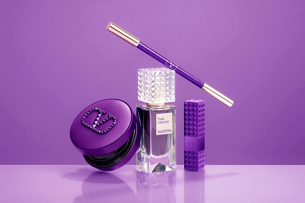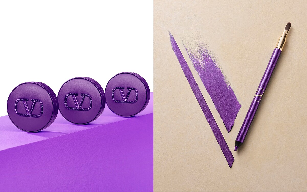 除了「閣樓漫遊」夢幻紫香帶來的創新與驚喜,VALENTINO也延續這場紫色風潮帶來全新「PURPLE DOSE幻紫限量彩妝」,全系列包含高訂光感氣墊粉餅、高訂鉚釘唇膏、持久防水眼線筆。搭配氣墊的皮革、唇膏的絲霧金屬等不同材質,驚喜呈現紫色各種華麗光感與前衛風貌。