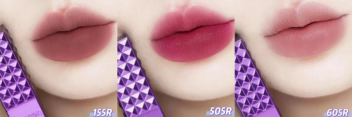 除了M編推薦的#134R、#125R,全新唇色還有 #155R煙木冷咖,時髦裸棕調剛剛好呼應最近的「摩卡慕斯」風潮;另外,奶油莓果色 #505R酒漬櫻桃、夢幻亮粉色 #605熱戀甜粉這兩支各自帶細緻碎閃,讓唇妝再添一抹夢幻光暈!
