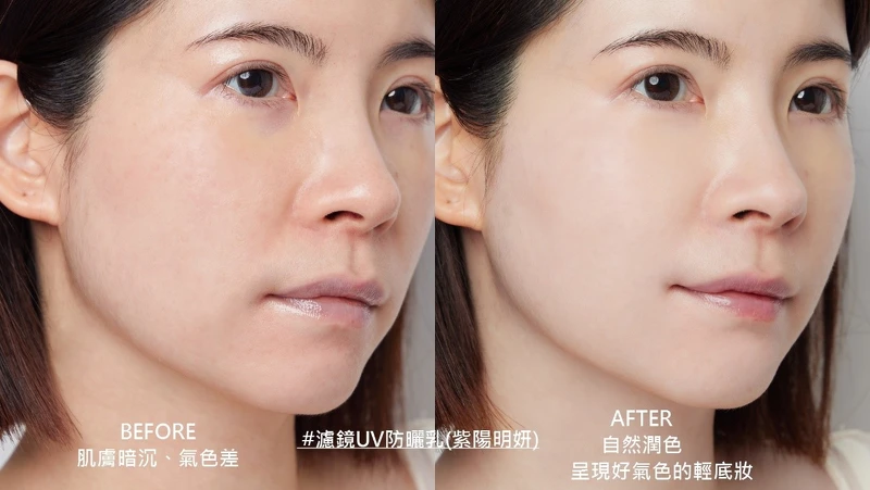 #濾鏡UV防曬乳:針對想要快速完妝出門、短時間完成防曬+自然輕透的底妝,如:趕上課、趕上班,或是運動時也要有好氣色的人。自然潤色效果,秒修飾暗沉蠟黃與毛孔,可作為輕底妝使用,又能防水抗汗,一整天都有漂亮的偽素顏!