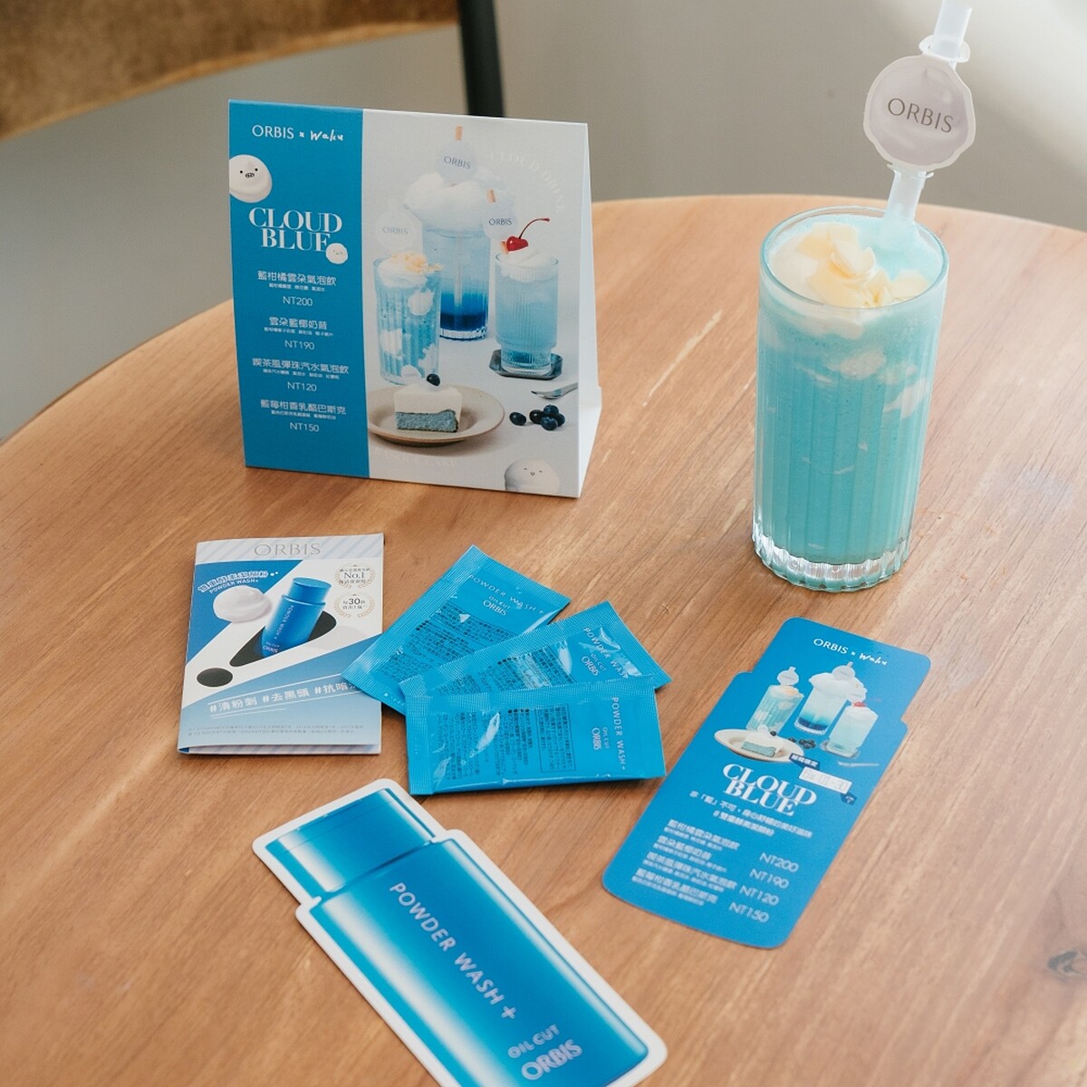 ORBIS以夏天主打的明星商品「雙重酵素潔顏粉」與Waku Waku Pasta赤峰店共同推出CLOUD BLUE雲感藍色系下午茶。