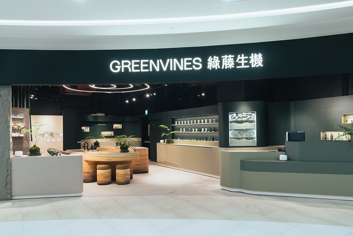 綠藤生機有史以來最大門市正式進駐Lalaport南港。品牌向來致力於推動永續、天然與減法保養理念,不僅產品成份追求自然,門市裝潢也選用了大量永續建材如水磨石材、亞麻等,打造南港的歷史地質景觀。
