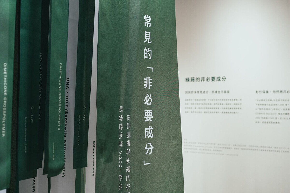 有別於以往的專櫃空間,綠藤Lalaport南港門市販售產品,更首度規劃實體策展區域,讓消費者在購物的同時,還能實際感受「減法保養」的概念。