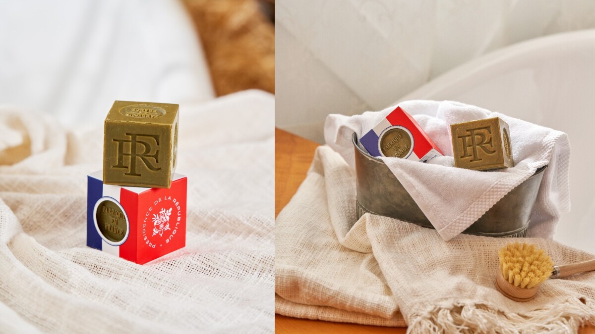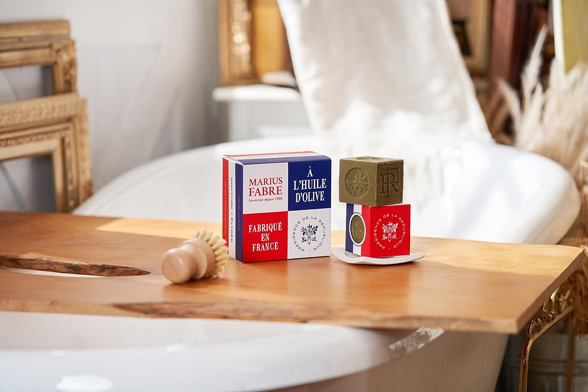 網路上大家最想收藏的就是Marius Fabre與法國總統府愛麗舍宮Elysee聯名推出的紀念皂,外盒以法國國旗藍白紅設計,印上法國官方徽章,象徵國家級認證與榮耀,打開來墨綠馬賽皂蘊含經典72%油脂比例,看得見的方正的手工藝切角雕刻,那份給你的尊榮、重現傳統與文化的深厚敬意,將是賦予你生活中最正能量的來源神品之一。