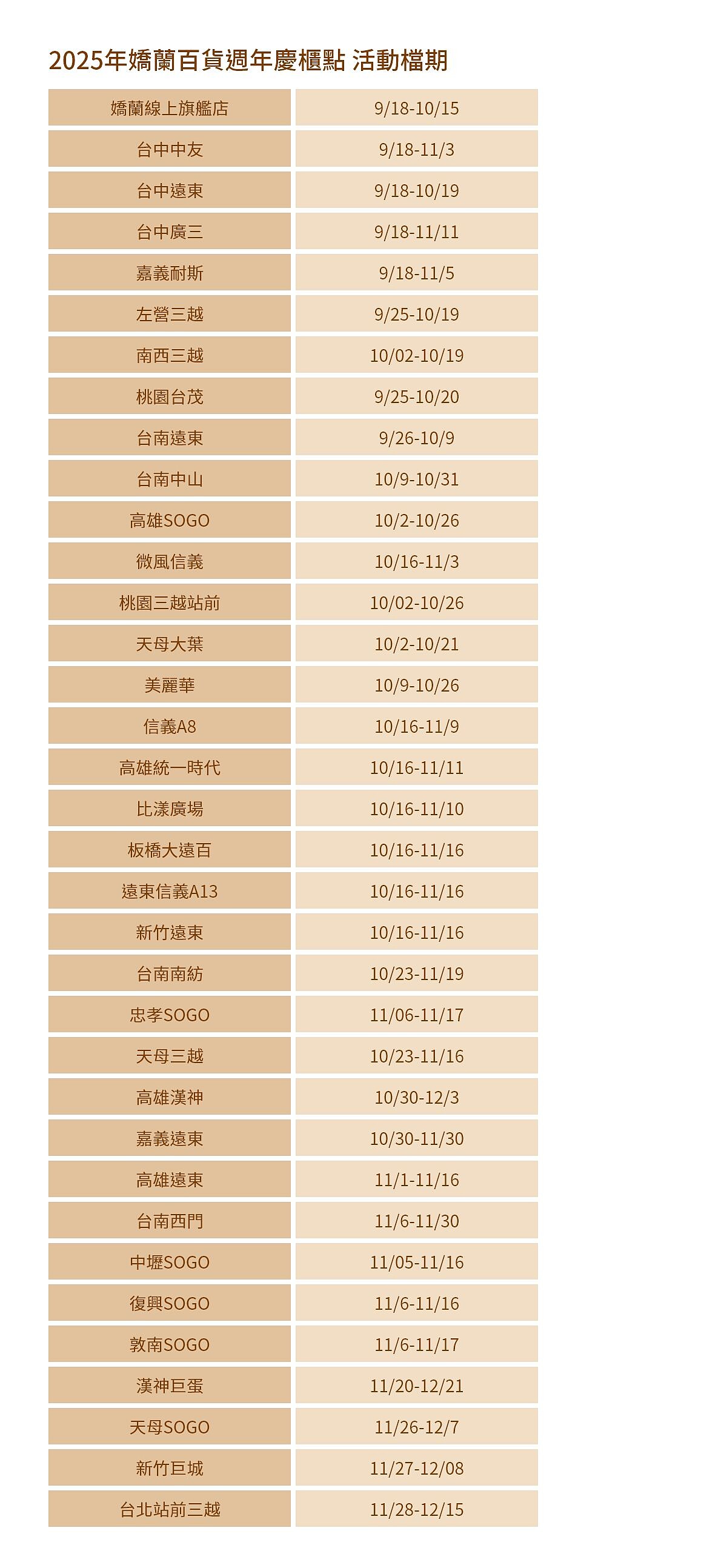 凡於嬌蘭各大百貨櫃點週年慶開打首四日回櫃消費即贈來店禮「皇家蜂王乳乳霜3ml」。(數量有限,贈完為止,內容物以櫃點款式為主)