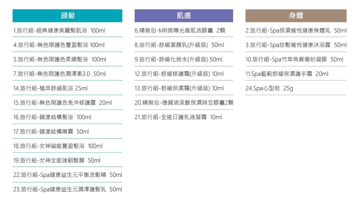 內含:無色限護色柔順髮浴 100ml / 無色限護色免沖修護露 125ml / 旅行組-無色限護色潤澤素3.0 50ml