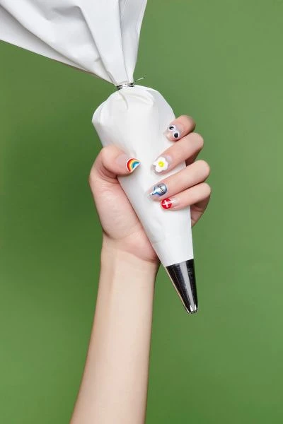 直接在打底後的透明裸甲上,畫下童趣塗鴉(或用貼紙幫襯),不需要拘泥完美筆觸,出賣你的赤子之心,恣意發揮新鮮創意,留下俏皮畫面。