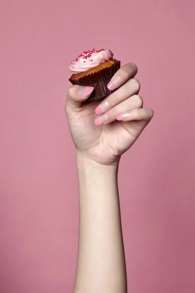 指甲變身成半透明澄澈的玻璃珠,在甲面漸層疊搭上粉紅,多了留白更具果凍感,手指在視覺上更顯纖長,半糖美人限定。