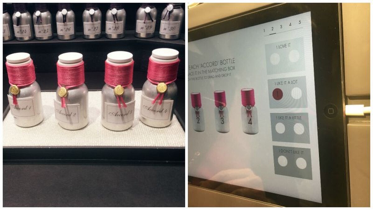 一開始,資深的香氛諮詢師會先挑出最基礎的4支氣味,這一題大家都會一樣,等每一支依喜好程度排列,找出「最愛、非常喜歡、一點喜歡與不喜歡」後,電腦就會依喜好排出精細的分析。