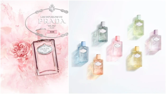 繼鳶尾花、鳶尾雪松、橙花、杏仁、康乃馨、香根草、含羞草等淡香精後,2017年Prada再度打造全新精粹系列新成員「玫瑰淡香精」,以玫瑰嬌嫩的粉色調為主軸,並沿用Miuccia Prada 1913年設計的歷史性勳章,搭配同樣粉色的皮革瓶蓋,調製出優雅而清新的玫瑰香氣。