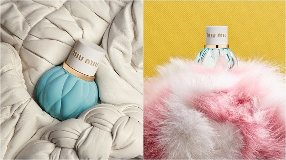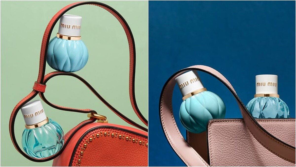 miu miu又宣布在今年9月,將品牌這2款淡香精變成20ML的迷你版本,瓶身延續品牌經典的matelassé小羊皮皺褶處理、藍色為主調,不同的是瓶身造型變得渾圓,瓶蓋則以白色鑲上金色浮雕的品牌名稱呈現。