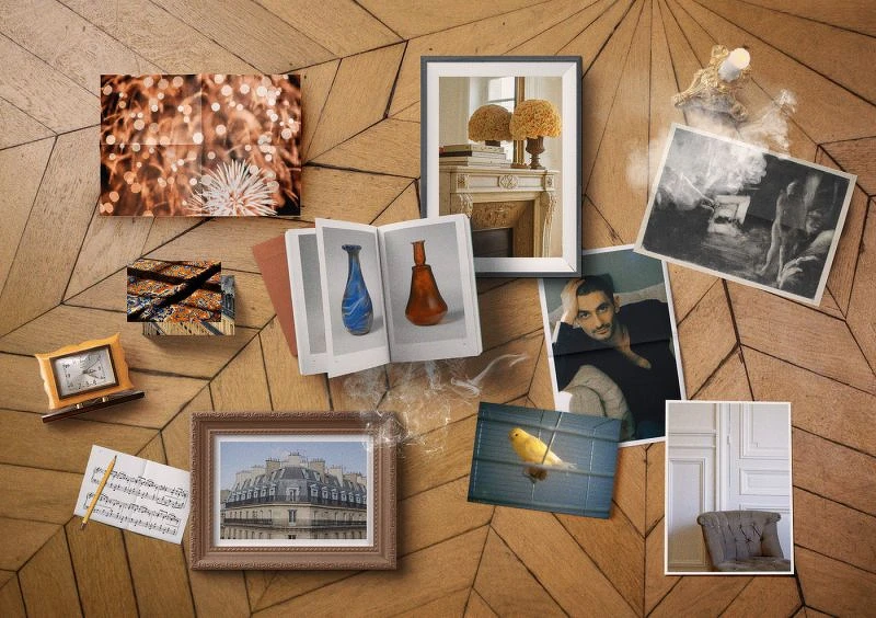 為了打造全新的蠟燭系列,他還搬出了記憶中不少收藏,比如下面這張照片,就是他在巴黎的家,家中的地板是特殊的三角造形,這個設計還可以在台北的MFK店內一窺一二。照片中有他養的鳥和貓,還有他從小最喜歡彈的鋼琴相關元素,這段回憶都成為Au17這款蠟燭的靈感。