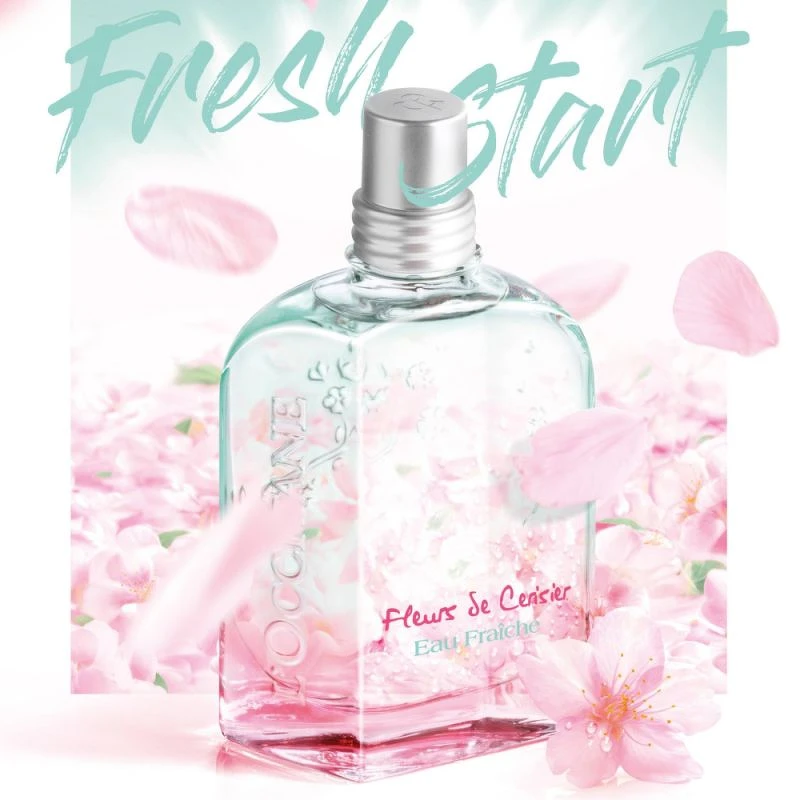 L'OCCITANE綠意櫻花淡香水,集結兩種來自普羅旺斯呂貝宏(Lubéron)地區的天然萃取物:櫻花花露及櫻桃萃取。以甜美櫻花與清新小蒼蘭花香作為前調,輕巧的迎領春天的到來。再帶出牡丹、白茉莉、玫瑰及黑醋栗交織而成的核心香調,融合淡雅花香與鮮明果香。最後以雪松、白麝香、檀香的溫暖木質基調作為圓融尾韻,展現出優雅清甜的女性香氛。