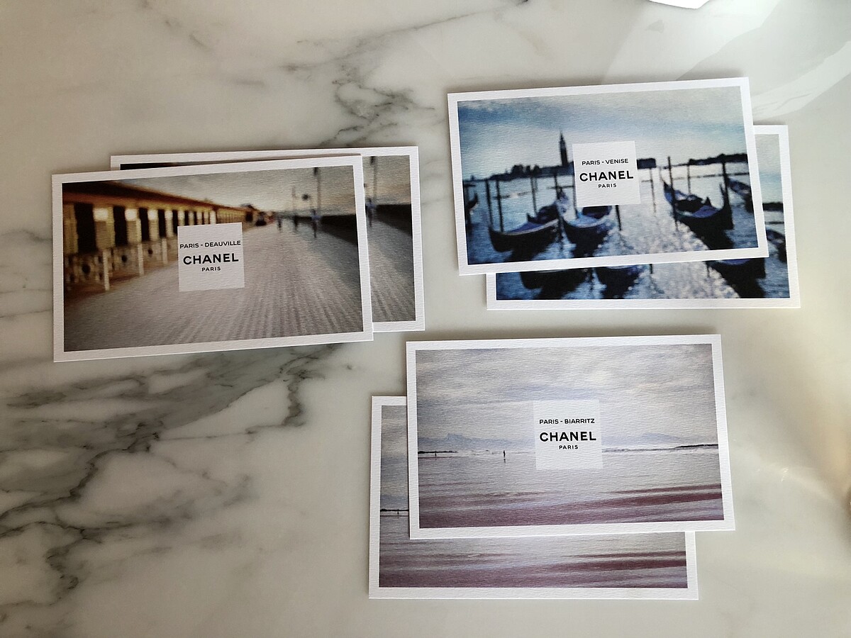 Chanel以Paris-Deauville(巴黎-杜維埃)淡香水為主軸發想,以印象派視覺形象傳遞出有別於以往有代言人的溝通方式,每一幅代表著景點的畫作都以印象派三原色:深綠、深紫、靛青來捕捉大自然變幻莫測的瞬間。