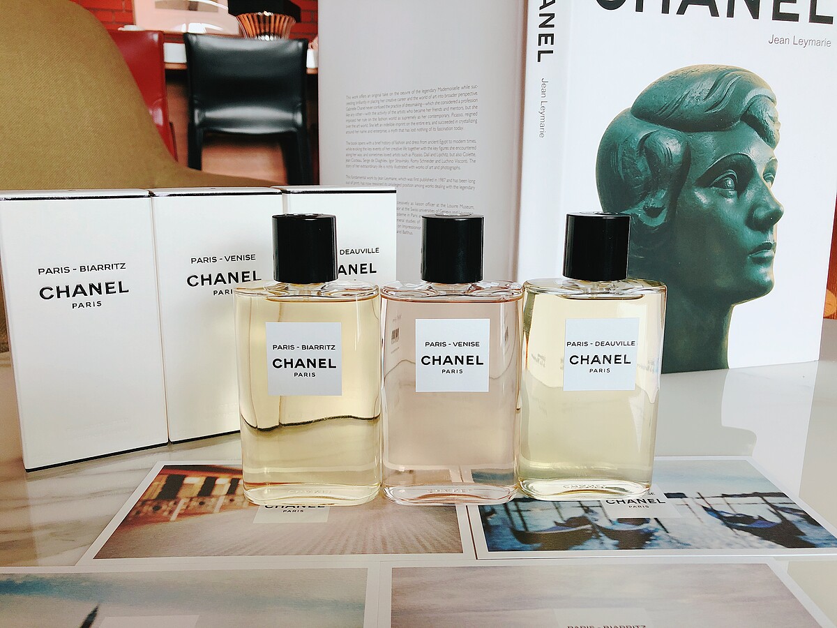 香奈兒一次推出全新3款淡香水,靈感來自與香奈兒女士連結強烈相關的3個地點,分別是設立位於Deauville杜維埃的第一間店、第一家訂製系列精品店的Biarritz比亞里茲與情傷之後療傷之地Venise威尼斯,這些在香奈兒精品世界中再熟悉不過的度假聖地與場景,正描述著香奈兒女士一生的足跡。