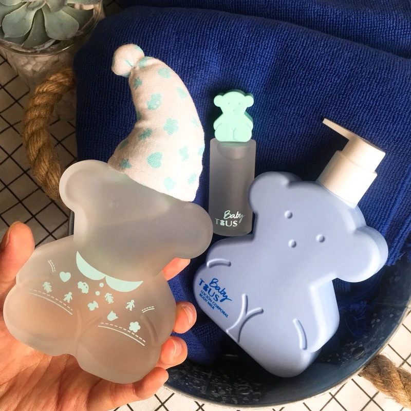延續TOUS小熊圓潤俏皮的瓶身,2018年的淘氣小熊寶寶潔白睡帽限量版淡香水更加清新可愛!以藍白為主要設計色調,潔白睡帽版本淡香水與同系列香體乳及熊頭隨身瓶,透過自然不造作的橙花、蘋果淡雅香氣,添上白麝香清新舒服如沐浴般的迷人香調,帶領女性找回純淨溫柔的樣貌。
