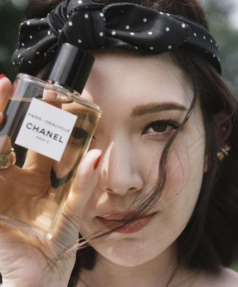 瑋甯在火車上手握的香奈兒巴黎-杜維埃淡香水正是描述著周末小度假的閑適小旅行,帶著清新原野的綠色氣息,瑋甯也與香水親密合影,非常性感。