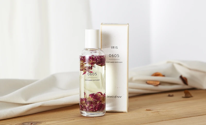 innisfree 2018年7月將推出居室純粹香頌升級版,一共有10種味道。每個香味的瓶身上都有著4位數字,代表「在濟州島的旅行日期」,是香氛的靈感來源。除了柔和迷人的香味之外,最美的是這次在透明的瓶身中放入獨一無二的乾燥花,透過嗅覺與視覺重現濟州島的自然美景。