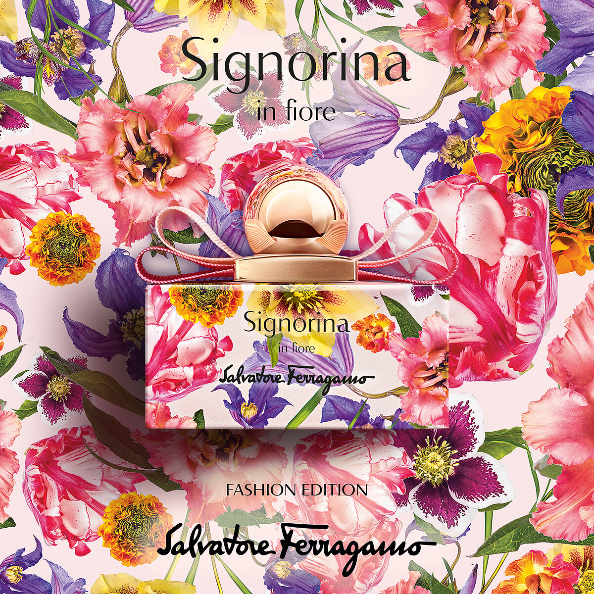 第一次接觸這罐香水的人,大概都會在心裡默默讚嘆:「好美的香水!」香水瓶身上印有優雅、生動的花朵圖案,被其粉紅色的金冠瓶蓋所照亮。其實這宛如繡滿千朵嬌花裙子的外衣,其靈感來自於新花卉時尚主題的彩色花瓣,也是和 Salvatore Ferragamo 華麗的春夏季系列互相呼應。