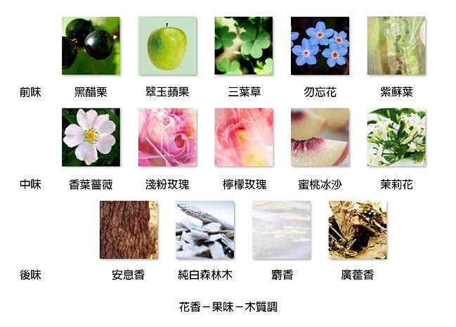 中味:香葉薔薇、淺粉玫瑰、檸檬玫瑰、蜜桃冰沙、茉莉花