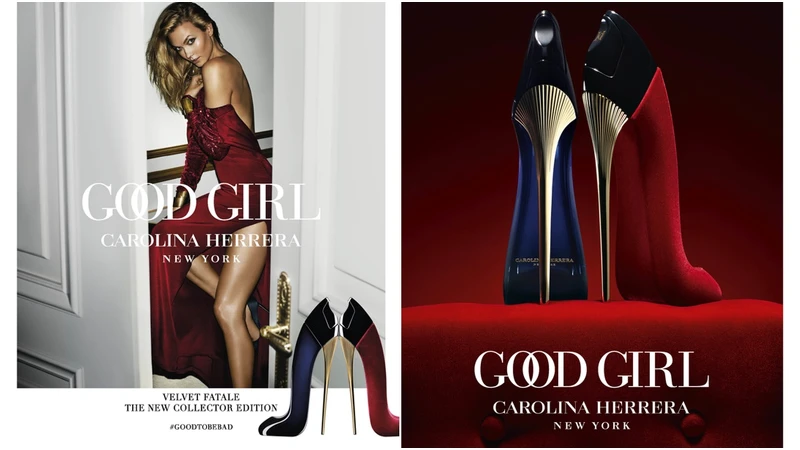 2017年9月上市的GOOD GIRL女性淡香精,有別於以往香水的造型,推出如高跟鞋外觀的瓶身,展現女性使壞的形象。而今年這只高跟鞋換上紅絲絨外觀,再推出全新GOOD GIRL絲絨限量女性淡香精。