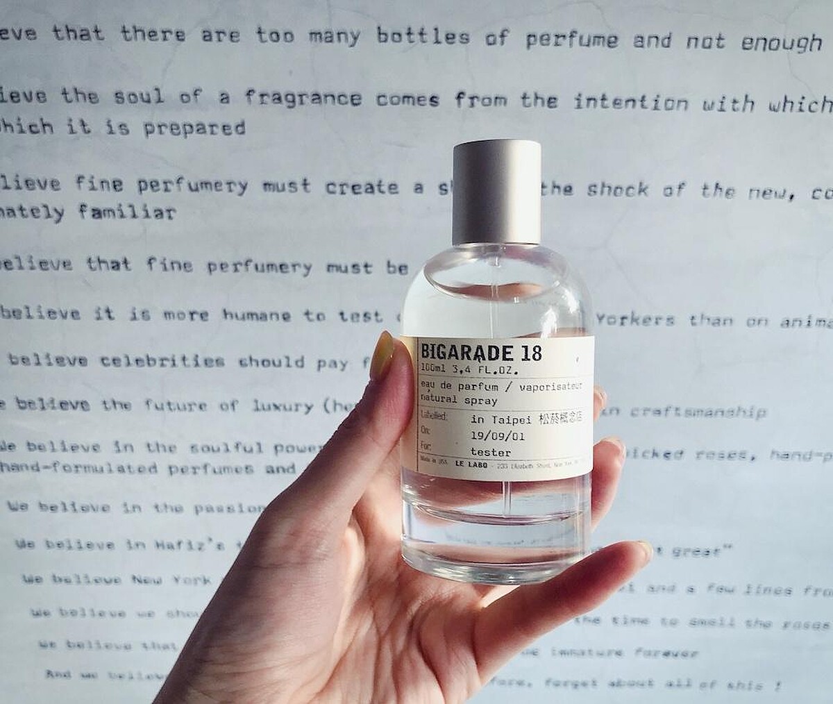 由於Le Labo 2017年引進台灣,自2018年9月起,城市限定系列香氛開始出現在台北形象店,讓我們也能聞到這些城市的專屬香氛。只要購買城市香氛系列,皆可於能夠新鮮配製的Le Labo門市進行再次填充,不論是哪個香調,屬於哪個城市都不被限制。