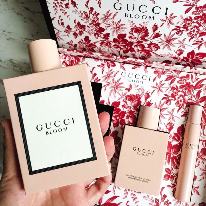 來自印度的天然晚香玉與天然茉莉完美融合,以獨特萃取方法提煉的茉莉花蕊將天然茉莉花與人工分子融合,散發出清新的青草和花瓣香。另外,Gucci Bloom更以首次作為煉香調配成分的花卉-使君子作為特色。使君子產自南印度,表達了香調新穎獨特的概念。當使君子綻放時,它的顏色會從白色漸變為粉色,最後在盛開之際變為紅色。花藤的清新芬芳又為此款香氛帶來柔美的女性氣息。