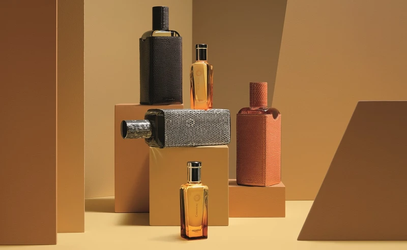 Hermes以製作馬具起家,皮件製品本就是品牌經典,而精彩的香氛之旅,則是從1951年正式發表愛馬仕之水開始。頂級的Hermessence愛馬仕聞香珍藏系列本着愛馬仕的精髓與香水的內在精華詮釋一切,結合了品牌皮革與香水的兩大製作工藝,在淡香水採用了少見的瓶蓋皮套,同時也特別為100ml香水瓶設計了珍貴的小牛皮、蜥蜴皮等皮套,讓圓滑柔美的觸感和諧地匹配這些香水欲傳達的芳醇訊息。