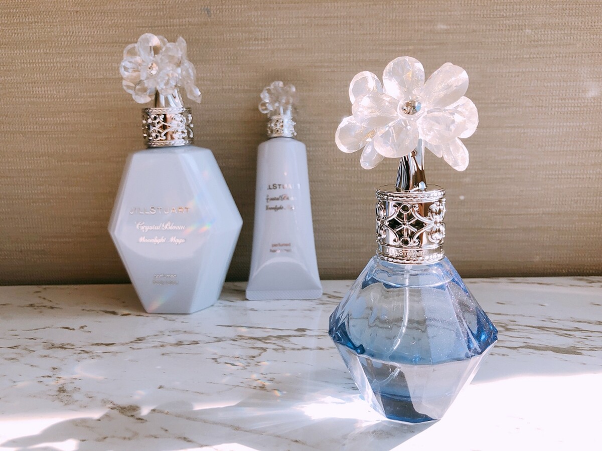 Jill Stuart這次要呈現的月夜下粉雪紛飛的景色,以此打造出世界上最恬静溫暖的奇幻香氛「花鑽香水(幻想月光)」,因此前味是月色果香調,以佛手柑、香豌豆花、高山火絨草等透明感香氛表現清幽夜晚。中味是被月色照耀的雪花,以夢幻且可愛的粉雪引領出玫瑰和香水草的甜蜜香氣。後味是雪靜靜飄落堆積,將世界溫柔地包覆著般的月夜麝香,以澄紗花香氛加上麝香、雪松木表現出安全感。