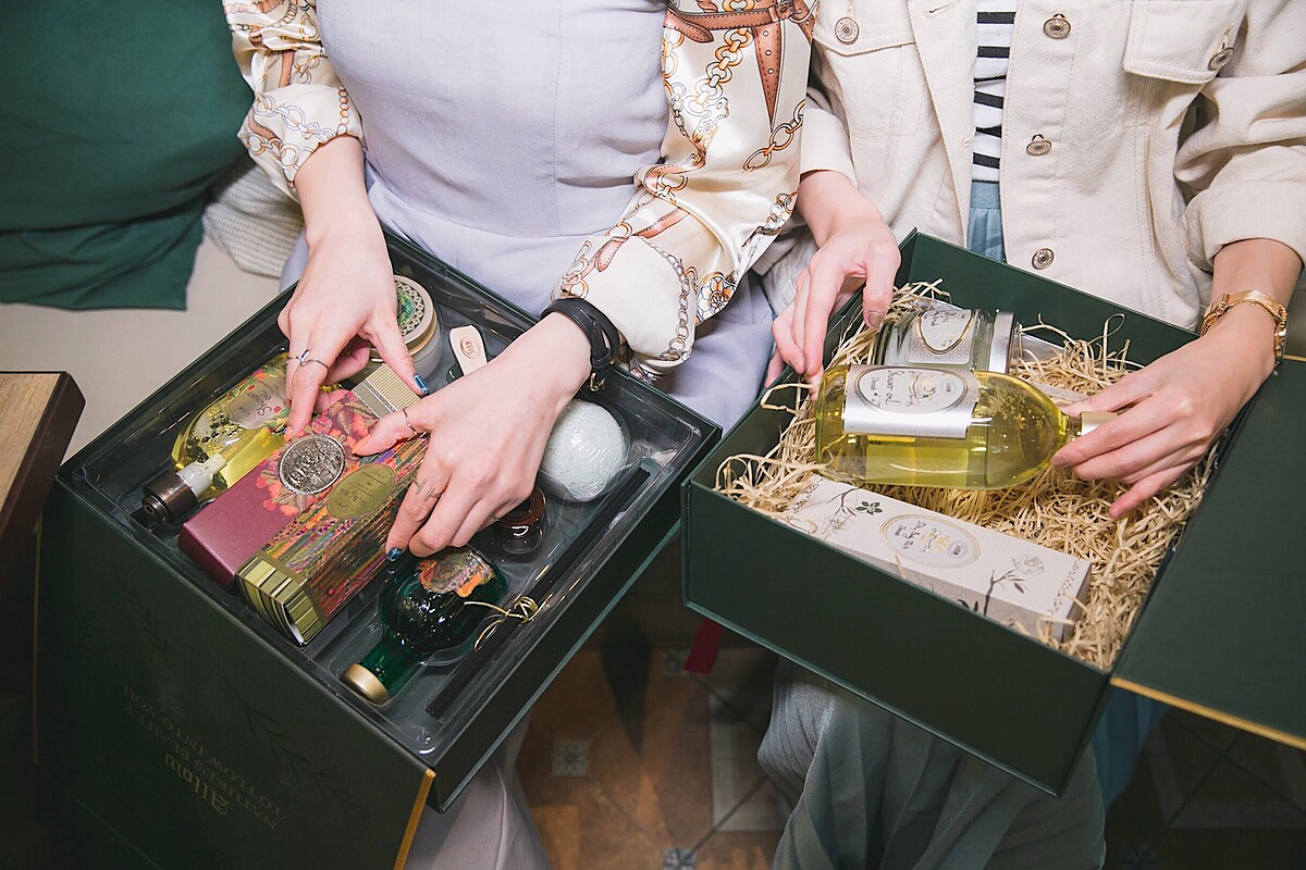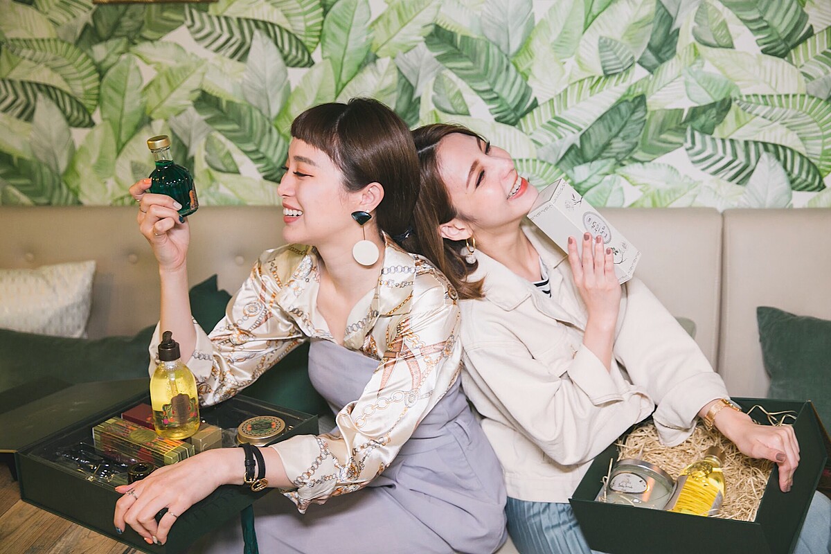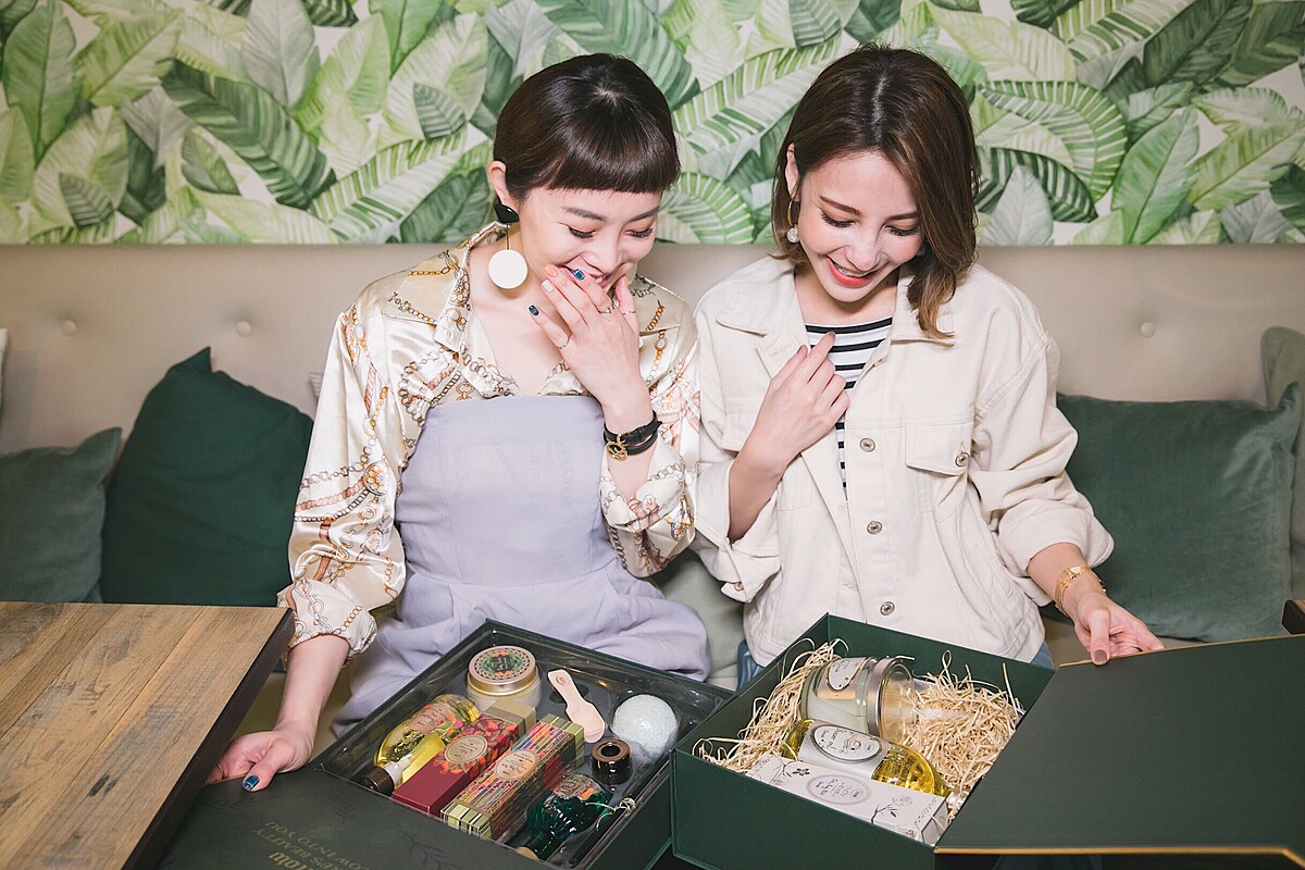 兩款禮盒皆內含沐浴油、身體磨砂膏、身體乳三件明星組,洗後全身彷彿噴上香水般,香氣飄逸久久不散,療癒香氣讓兩人直呼:SABON果然是怎麼送都不會出錯,兩款都好想要!