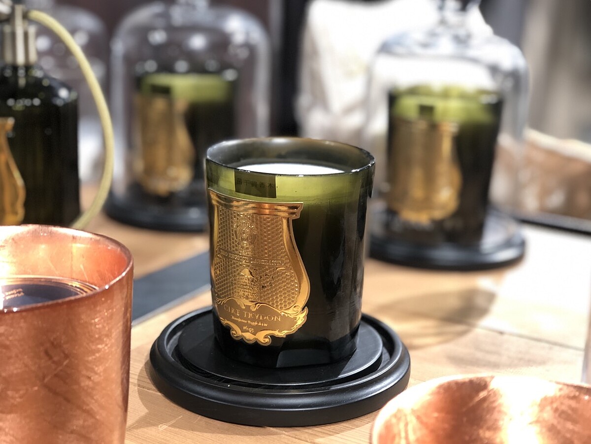 走進初衣食午,你可以看到大名鼎鼎的法國皇家香氛品牌Cire Trudon,曾是法國皇室路易十四、瑪莉皇后、拿破崙御用蠟燭工坊,外包裝上3個榮譽獎章足以道出它的傳奇與崇高地位,400年來堅持以椰核、大豆與棕櫚油與百分百純棉芯心,綠色玻璃屬於傳統香氣,藍色玻璃燭杯是夏日限定,每年還有聖誕系列推出,室內香氛則保有傳統噴唧使用法,古典又優雅。