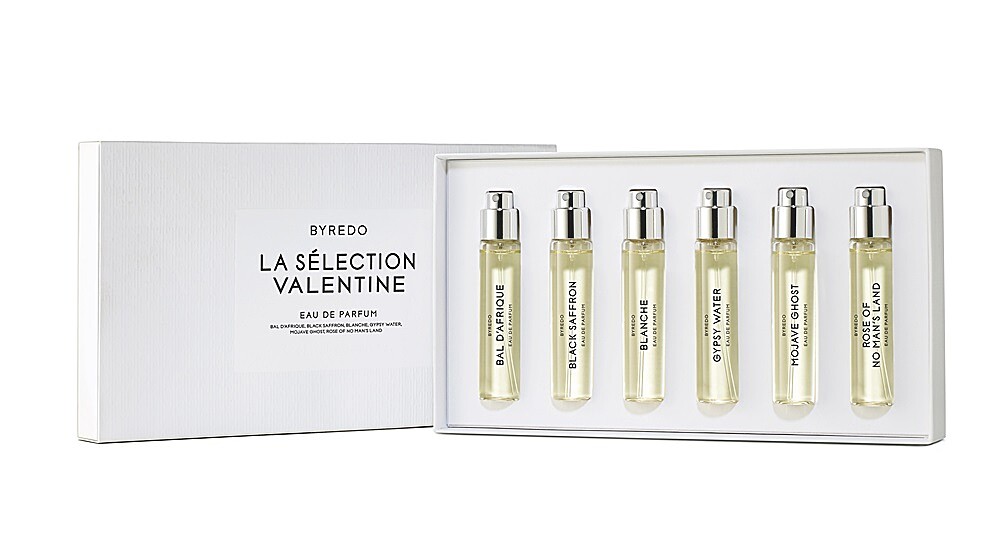 在情人節前夕,Byredo特別從淡香精中,挑選6款廣受香氛控喜愛的香氣,熱帶爵士、黑色番紅花、返樸歸真、吉普賽之水、莫哈維之影及無人之境,集合成情人節限定旅行淡香精禮盒。