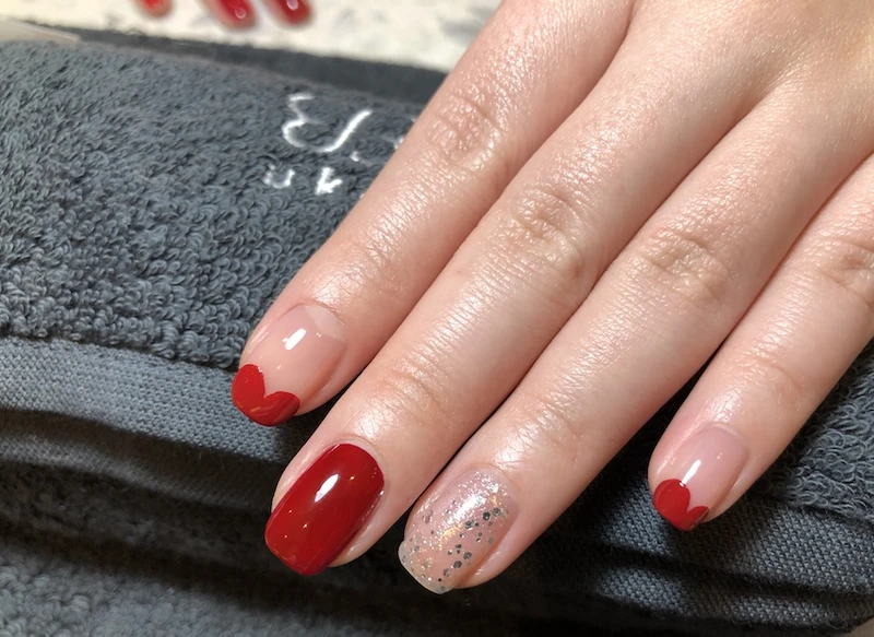 擔心紅色過於張狂、豔麗,可以減低紅色在甲面的面積,不一定要塗滿整個甲面,在指甲前緣處做點綴,或是以法式、反法式的方式呈現。更能顯得年輕可愛。