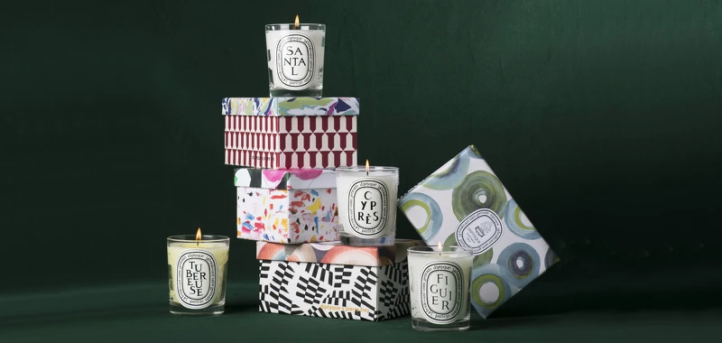 蠟燭混搭不是新鮮事,玩法也因個人感受有別,只是特別的是,Diptyque這次還與Pierre Frey合作,1935年創立至今,專注於裝飾領域,每一個創作都傳遞出傳統法式精神,也因此此次推出的5款禮盒,有特別的禮盒包裝,由Diptyque與Pierre Frey共同發想,自Pierre Frey設計資料庫中挑選代表性的圖案,來完整表達Diptyque 將近50款的香氛蠟燭視覺樣貌。