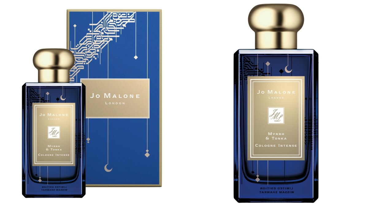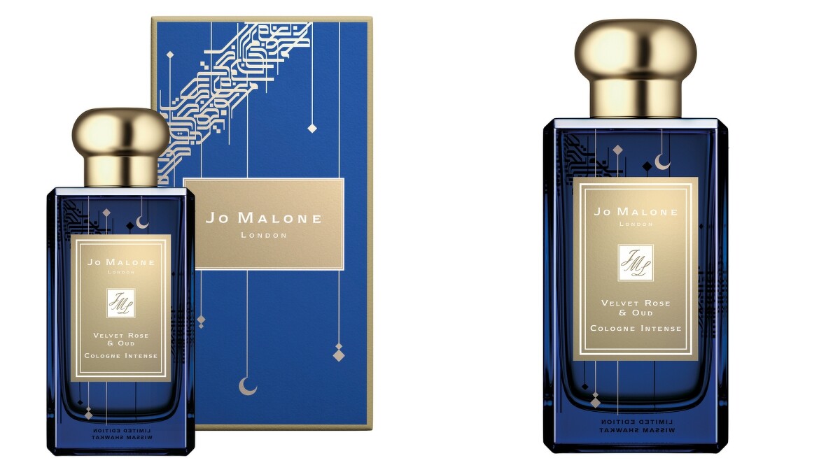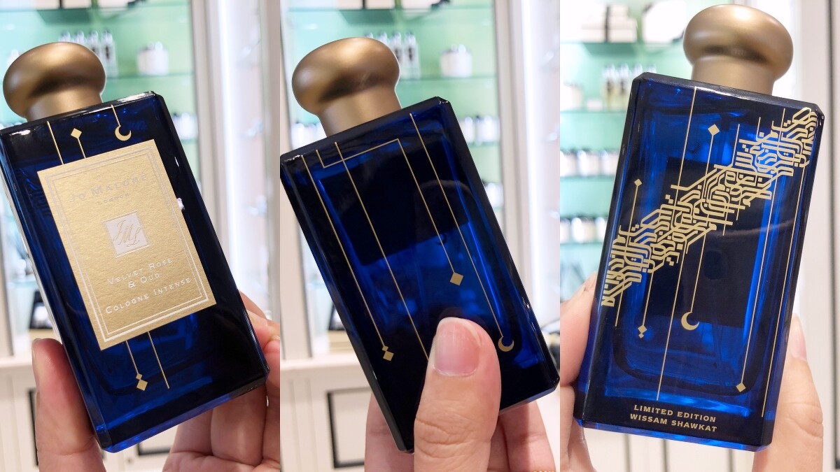 「浪漫新月限量版」以一千零一夜神話中的靛藍天空為靈感,四面的瓶身上都點綴著新月以及垂掛在藝術文字構築而成的神秘銀河,看起來格外浪漫。