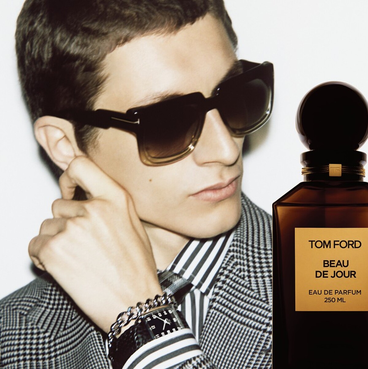 Tom Ford表示:「我大約在早上4點多時會自發性清醒(雖然我也想要多睡一點,但我一直是個睡眠極少的人),起來的第一件事情就是量體重(若多了兩、三磅,接下來幾天會開始落實減重計劃,大部份只吃蔬菜與水果),接著,我會為自己煮一杯一是濃縮咖啡加冰塊,邊泡著熱水澡邊啜飲著咖啡,讓自己打起精神,我發現泡澡對我來說有冥想的功能,所以我用泡澡打理好自己。再來就是,在早晨8:00健身教練抵達前,我會趁空檔回覆每天超過100封來自各部門的信件,每天的運動重點大致會以30-45分鐘的有氧後,搭配其他的核心與重量訓練,之後再洗一次澡,換上平日的「制服」(白襯衫、黑色或深色西裝,深色領帶搭配金色領針),最後一定要”穿上”一款符合今天心情的香水再出門,”穿上香水”這件事情對於我而言是個儀式,是Total Look的表徵,也是讓你心情歸位的方式,用香味帶給你一天美好的自信,那是你的態度與語言,也是你今日與他人的隱性距離,而BEAU DE JOUR美好的一天就此誕生,希望藉由這款香氛,能夠帶給你無窮的自信與幸運,是來自內心對你的祝福,希望每個人都能擁有美好的一天。」