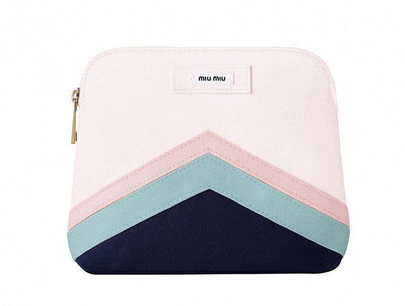 為了迎接迷你Miu Miu回歸上市,品牌更以Miu Miu歷屆香氛色系為靈感,推出夏日Miu Miu彩色拼接化妝包。