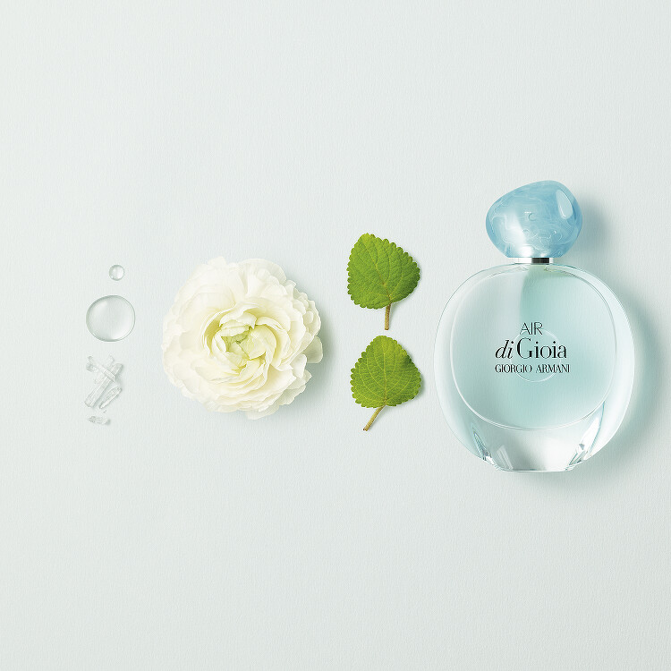 水生花香調【寄情水湛藍氣息淡香精】則是以乾淨的鹽香調開場,襯托出鮮明活潑的水生花香,並藉由廣闊香增添一絲個性尾韻,含有純淨海鹽,就像摻著浪花的地中海海風般純淨清新!全新di Gioia寄情水淡香精系列為凸顯女性清新形象,包裝上採用清透的琉璃流線瓶身,象徵女性清新曼妙的靈魂身段,搭配GIORGIO ARMANI香水經典的寶石紋路瓶蓋,以淡粉、淡黃、淡藍、淡綠的色澤調和,更顯得全系列清新的意象!